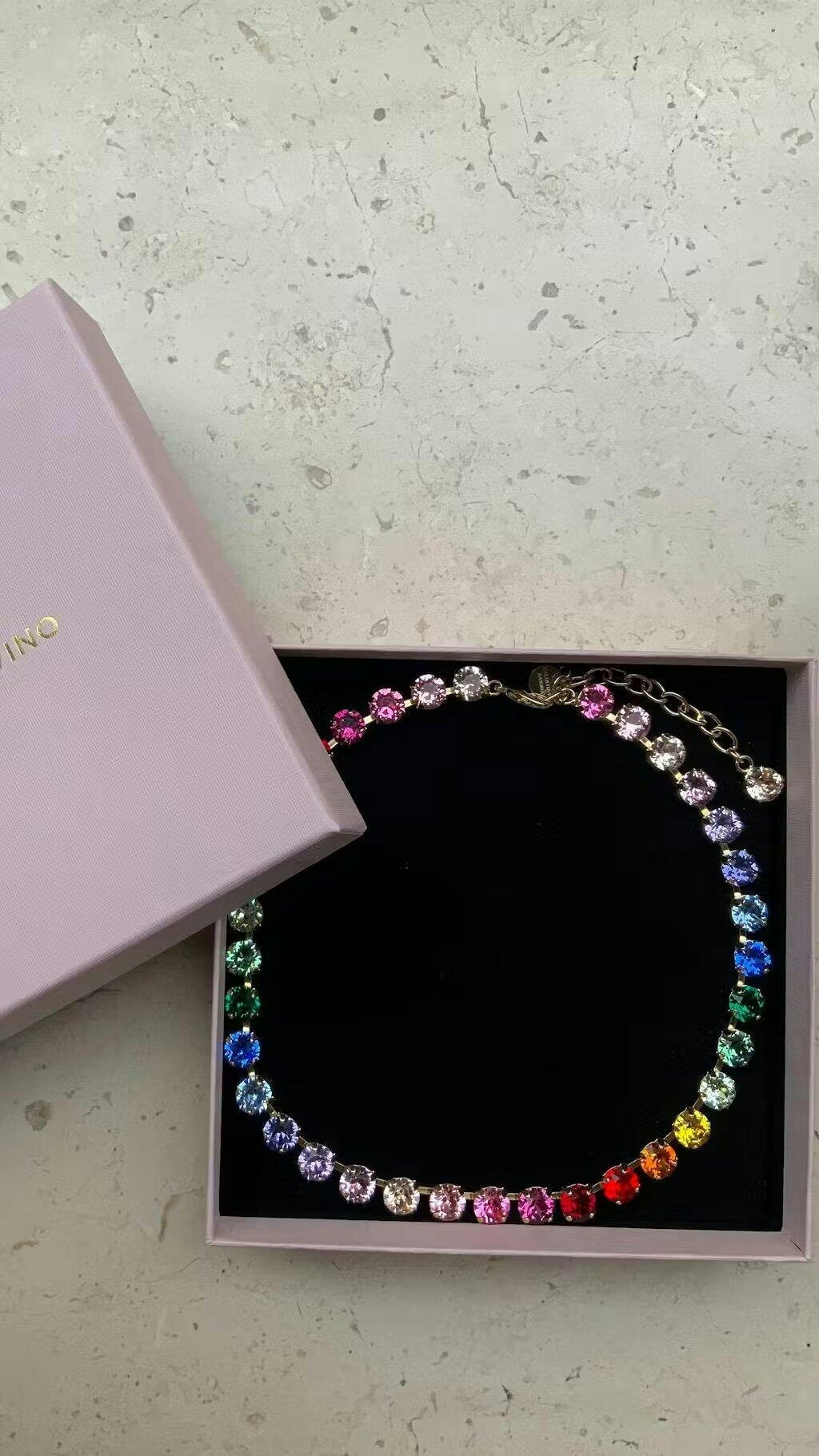 Preso la collana arcobaleno e devo dire che merita davvero. Le foto online rendono già bene, ma dal vivo è decisamente meglio: i colori sono brillanti e la luce che prende è notevole.